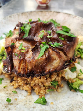 Pastilla d’agneau, mélange de choux et petit épeautre
